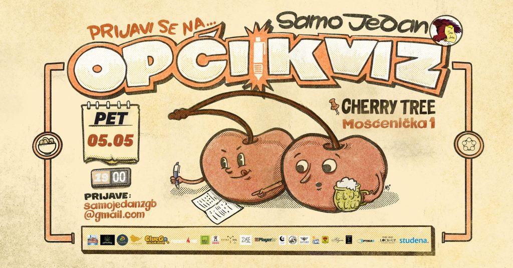 Želite provjeriti svoje znanje i zabaviti se, onda dođite na Opće znanje pub kviz 05.05. u 19:00h u caffe bar Cherry tree, lokacija Mošćenička 1